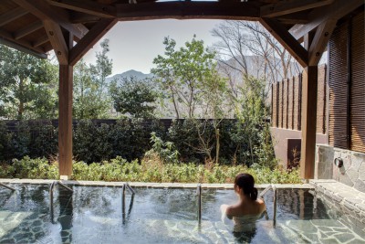 石老山の借景を楽しめる展望風呂や湯すずみテラスもあり、入浴と森林浴による二重の癒しを楽しめます。