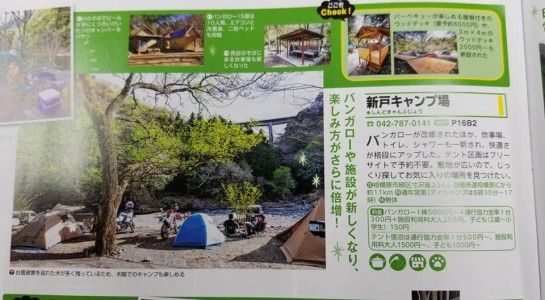 エリアごとに紹介されておりますが、相模湖地区所在の新戸キャンプ場、相模湖休暇村キャンプ場、相模湖みの石滝キャンプ場、プレジャーフォレスト内にあるpicaさがみ湖が掲載されているほか、遊覧船のりばの紹介、おすすめ立ち寄りスポットも紹介されております。