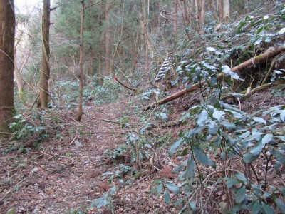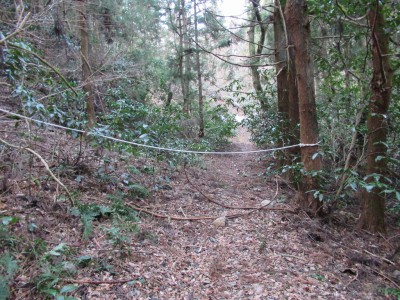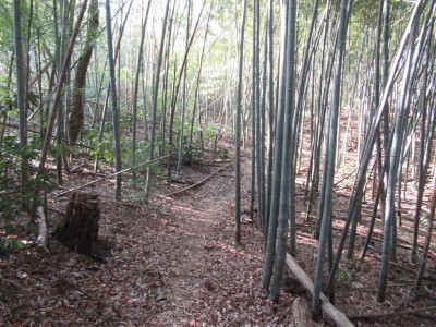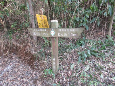 嵐山頂上と鼠坂のちょうど中間地点だ。嵐山頂上から35分ぐらいの場所。 中間地点から、アップダウンが結構あり2回目の斜面崩壊の場所があった、やはり迂回で多少時間がかかり、最後はプレジャーフォレストの敷地の脇を下って鼠坂に到着。