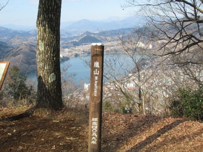 登山口から頂上まで30分、頂上から相模湖、遠くは山梨方面の山々が見渡せる。