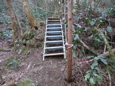 低い地点から少し登ると、台風19号で斜面が崩壊した場所だが、階段を利用した迂回路が出来ていた。迂回路は以前の道から5分程度大回りとなっている。